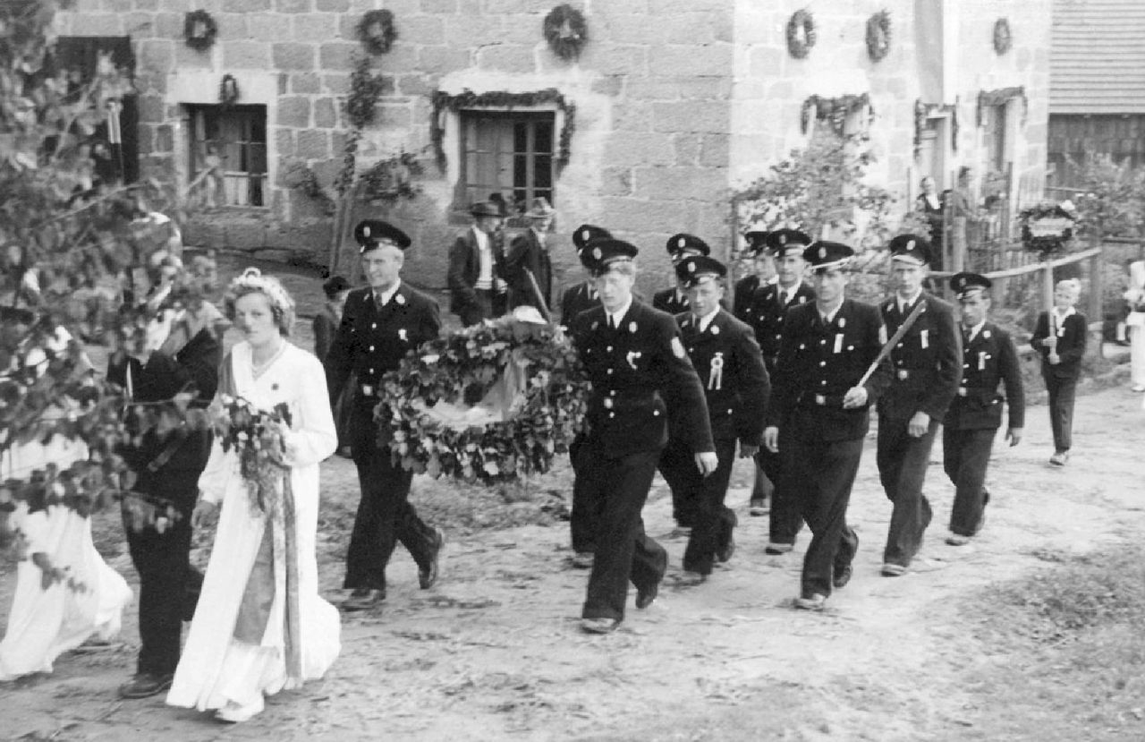 Ein Brand zerstörte am 4. August das Wohnhaus und die Scheune der Gebrüder Raab in Loh. Zum Einsatz blies, wie es damals üblich war, Kommandant Leonhard Heininger sen. mit der Tremolo-Fanfare. Sie stammt aus der Gründungszeit der Wehr.